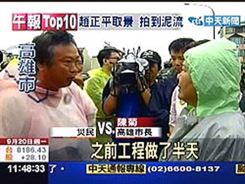 陳菊認(rèn)為這次水淹高雄是天災(zāi),但是市民氣憤難耐,陳菊在勘災(zāi)的時(shí)候,還有市民當(dāng)面怒嗆“做成這樣,愛河淹水是人禍,你不用選了”。