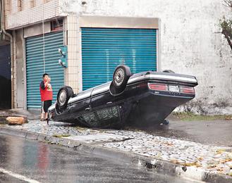 中新網(wǎng)9月20日電 據(jù)臺(tái)灣《聯(lián)合報(bào)》報(bào)道,臺(tái)風(fēng)“凡那比”(大陸稱“凡亞比”)強(qiáng)勁,花蓮刮起17級(jí)強(qiáng)風(fēng),一整排十多輛轎車車窗被吹裂“開花”,轎車四腳朝天,摩托車騎士閃躲滿天飛舞的招牌鐵片,有民眾以“血滴子”來(lái)形容它的恐怖。