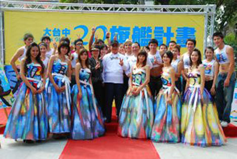 中新網(wǎng)11月10日電 據(jù)臺(tái)灣“中廣新聞”報(bào)道,國(guó)民黨臺(tái)中市長(zhǎng)參選人胡志強(qiáng),10日在臺(tái)中公園湖心亭畔,以展秀方式,發(fā)表二十大旗艦計(jì)劃,宣示要為大臺(tái)中開(kāi)創(chuàng)美好未來(lái)。特別的是,這些計(jì)劃透過(guò)設(shè)計(jì)師巧手,化成美麗畫(huà)作,還拓印成秀服,在激烈的選戰(zhàn)中,多了一點(diǎn)創(chuàng)意與藝文味,相當(dāng)吸睛。