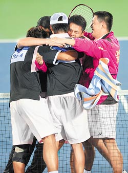 中新網11月15日電 據臺灣《中國時報》報道,中華臺北亞運代表團在廣州亞運會第二天收獲豐碩,上屆在金牌戰(zhàn)失手的軟式網球男子團體賽,昨日借著林鼎鈞與劉家綸在決勝點演出精采逆轉,以二比一后來居上擊敗日本隊,替中華臺北代表團奪得廣州亞運首金。