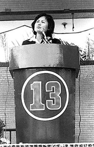 如果沒有家族勢力作后盾,悲情牌就成了女性打入政壇的必勝法寶。1979年“美麗島”事件發(fā)生后,“代夫出征”風(fēng)行一時(shí),當(dāng)時(shí)被國民黨當(dāng)局逮捕且判刑的張俊宏、姚嘉文、林義雄等人,他們的妻子均在各種選舉中高票當(dāng)選。1984年陳水扁因“蓬萊島案”入獄后,妻子吳淑珍也高票當(dāng)選“立委”。