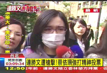 所幸連勝文在手術(shù)后,生命跡象總算穩(wěn)定下來,蔡依珊正午時分也在親友陪同下前來投票。