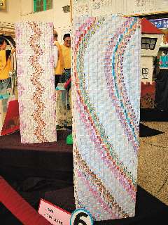 臺南高商廣告設計商、當地教師則與學生共同創(chuàng)作,提供五項作品參展,分為鳳凰花和安平古堡等造型。府城舊冊店家潘靜竹則以“愛心久久”為題,將發(fā)票箱點綴成美麗少女。