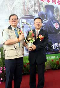 交接儀式中,陳弘毅由顏仁德手中接下象征火車行駛權(quán)意義的“路牌與通券”,并回贈(zèng)代表嘉義地方民俗技藝“交趾陶”。