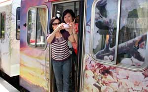 首航的彩繪列車行駛途中,進(jìn)行沿線風(fēng)景、歷史人文的導(dǎo)覽解說,除可享受阿里山豐富林相的森林之美外,也能帶給民眾一場(chǎng)別開生面的阿里山饗宴,讓游客不虛此行。