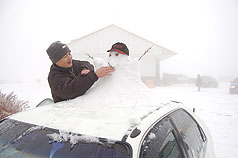 合歡山昨日傍晚6時許開始飄雪花,雖然雪勢不大,但整晚陸陸續(xù)續(xù)的飄,再度讓合歡山公路自昆陽以上至松雪樓沿線出現積雪。