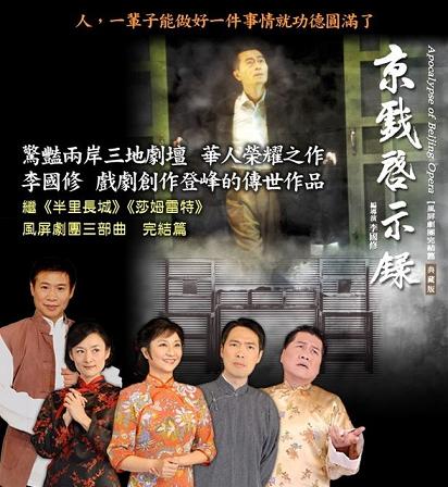 暨《半里長(zhǎng)城》《莎姆雷特》后,2007年度大戲《京戲啟示錄》典藏版,將于11月3日在臺(tái)南市立文化中心首演,之后將展開賺人熱淚的全省巡回演出。