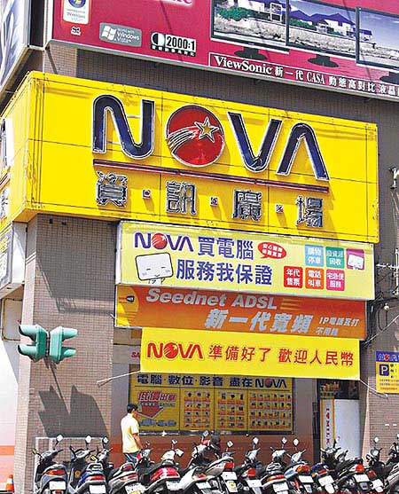 賣筆記型計算機的喬義科技店員蘇先生說:“大陸客每團約有五分之一的人會買計算機!彼硎,等NOVA可統(tǒng)一幫他們換錢后,就會開始收人民幣。