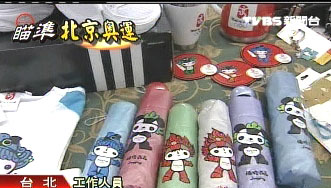 另外,以?shī)W運(yùn)福娃為主題的雨傘一把賣(mài)179元(新臺(tái)幣,下同),印有福娃圖案的兒童帽一頂189元,奧運(yùn)授權(quán)背包一個(gè)要價(jià)399元,而印有北京奧運(yùn)圖案的保溫杯一個(gè)賣(mài)799元,還有授權(quán)的T恤一件新臺(tái)幣448元。