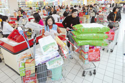 臺北盧小姐在凌晨3時前往大潤發(fā)購物,她說,使用3600元消費券購買年菜可獲300元滿額折價券,夜間購物還可現抵200元,等于現賺500元。大潤發(fā)公關何默真表示,消費券約占業(yè)績三成多,刷卡付款比例大幅降低,也讓賣場省去上百萬元手續(xù)費。
