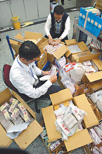 為了紓解兌領人龍,主辦兌領業(yè)務的臺銀特別找來近五百名臨時人員幫忙兌領、清點。合庫因為收到的消費券實在太多,直到昨晚行員還在加班。兆豐銀主管也表示,有分行一天收到上百萬張的消費券,光是一張張核對背面的數(shù)據(jù)填寫是否完整,就不知道要耗費多少時間。