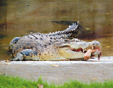 壽山動(dòng)物園4月傳鱷魚咬人意外,動(dòng)物園組長(zhǎng)張博宇為鱷魚治病遭咬斷左前臂。搶回?cái)啾酆蠼雍虾,張博宇持續(xù)復(fù)健中,至于闖禍的鱷魚正在冬眠。記者劉學(xué)圣/攝影