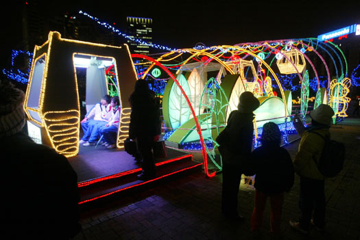2008臺北燈節(jié)登場,“開心廊”貓空纜車花燈特別耀眼。(圖:臺灣《聯(lián)合報》)