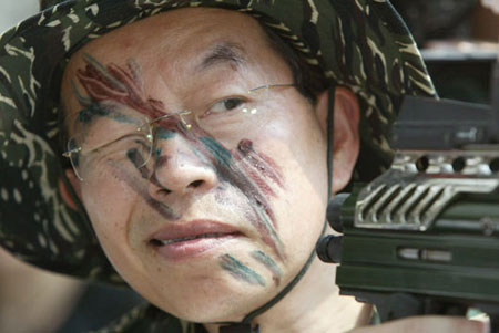 謝長廷“漏網(wǎng)鏡頭”:臉涂迷彩 大玩倒立(組圖)