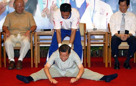 謝長廷“漏網(wǎng)鏡頭”:臉涂迷彩 大玩倒立(組圖)(3)