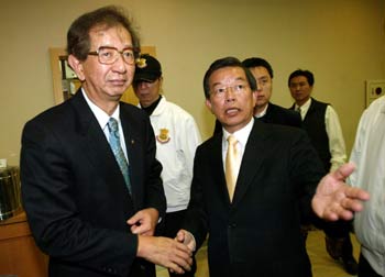 “中央研究院”榮譽院長李遠哲(左)21日表態(tài)支持民進黨候選人謝長廷,希望謝長廷能記取八年來陳水扁做得不盡完善的地方,落實人民期許和批評。