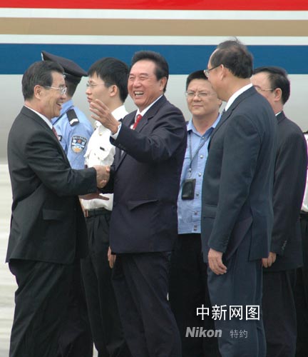 國務(wù)院臺辦主任陳云林、海南省常務(wù)副省長方曉宇等今天到機(jī)場迎接蕭萬長。
