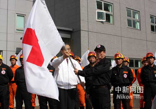 組圖:臺灣紅十字組織為即將入川的救援隊(duì)授旗