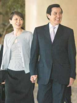 馬英九(右)偕夫人周美青出席郭臺銘與曾馨瑩訂婚宴。 臺灣聯(lián)合報圖