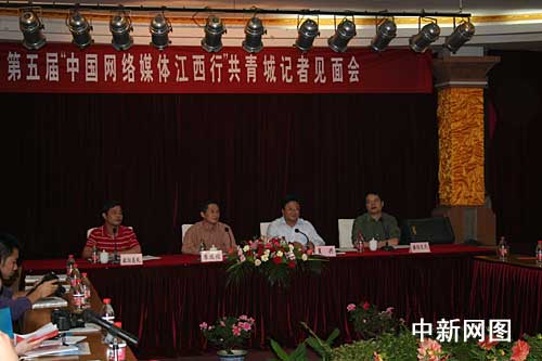 中新網(wǎng)10月20日電 參加“第五屆中國網(wǎng)絡(luò)媒體江西行”的采訪團(tuán)成員19日抵達(dá)共青城,圖為記者見面會現(xiàn)場。近年來,共青城圍繞“創(chuàng)新創(chuàng)業(yè)先行區(qū)、文化旅游帶動區(qū)、生態(tài)和諧示范區(qū)”,重點發(fā)展紡織服裝、文化旅游、教育與高新三大產(chǎn)業(yè),取得顯著成效。