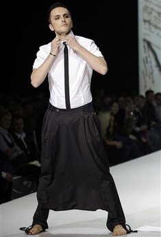 10月24日在莫斯科舉行的時(shí)裝周讓人大開(kāi)眼界,模特們拋開(kāi)舞臺(tái)上的矜持,用夸張的步伐、神態(tài)和自由的發(fā)揮展現(xiàn)另類服裝的另類魅力。