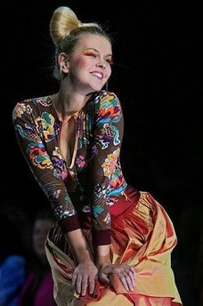 10月24日在莫斯科舉行的時裝周讓人大開眼界,模特們拋開舞臺上的矜持,用夸張的步伐、神態(tài)和自由的發(fā)揮展現(xiàn)另類服裝的另類魅力。