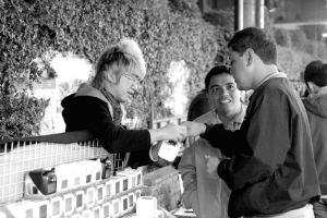 記者觀察,夜市的消費(fèi)者多為二三十歲的年輕人,女性也有不少,還有一些像記者這樣慕名而來體驗(yàn)一下夜市風(fēng)情的游客,但這部分人比例不算大。據(jù)介紹,在臺(tái)灣,逛夜市的大部分都是本地居民,夜市對于他們來說,不但是可以大快朵頤填飽肚子的地方,同時(shí)也是很好玩的地方,逛街,殺價(jià),打打彈珠、撈撈金魚,在眾人的圍觀下為自己剪一幅栩栩如生的剪影,在各種具有玩樂性質(zhì)的攤位上試試手氣,這些,都很適合一家老少共同出游消磨一晚的時(shí)光。