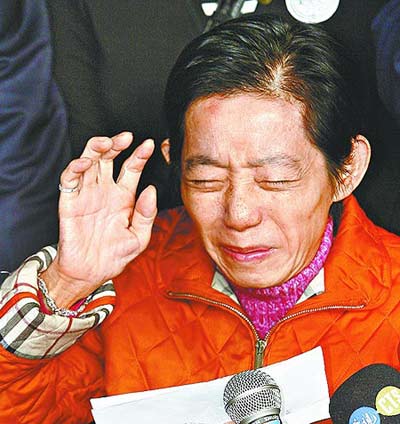 2月10日,臺(tái)北地方法院再次傳喚陳水扁之妻吳淑珍到庭應(yīng)訊,繼續(xù)審理前臺(tái)灣地區(qū)領(lǐng)導(dǎo)人陳水扁家所涉弊案。吳淑珍在連續(xù)17次拒不出庭后,當(dāng)日終于現(xiàn)身,并在兩個(gè)半小時(shí)的庭訊結(jié)束后,發(fā)表簡(jiǎn)短“道歉聲明”,表示今后將“隨傳隨到”。圖為吳淑珍庭訊結(jié)束后離開(kāi)臺(tái)北市地方法院時(shí),媒體圍追。 中新社發(fā) 路梅 攝