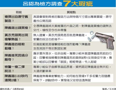 呂秀蓮強(qiáng)烈質(zhì)疑,項(xiàng)目小組自始自終認(rèn)定無共犯,對于具特工背景、側(cè)面影像與黃衣禿頭男亦極近似的黃維藩,在案發(fā)前的言行舉止并未深入追查,啟人疑竇。