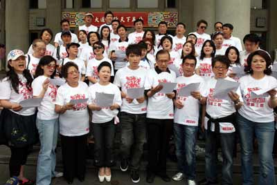 中新網(wǎng)6月4日電 四川強震災(zāi)情慘重,臺灣藝人愛心不落人后,演藝工會理事長康凱今天率數(shù)十位老中青藝人,在臺北“國父紀念館”拍攝賑災(zāi)歌曲“震不碎的心”MV,包括高凌風(fēng)、白冰冰、楊宗緯等人參與舉,希望未來這張單曲能義賣募款,發(fā)揮拋磚引玉之效。