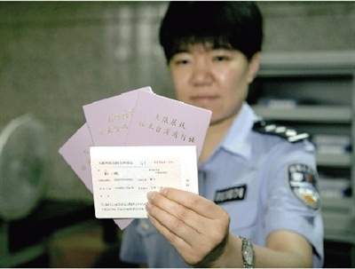 昨天上午10時(shí),北京市公安局出入境管理處民警展示《大陸居民往來臺(tái)灣通行證》。據(jù)出入境管理處負(fù)責(zé)人介紹,當(dāng)天下午,所有參加首發(fā)團(tuán)的北京旅行社都將領(lǐng)到證件。 本報(bào)記者盧國強(qiáng) 通訊員趙宏宇 攝影報(bào)道