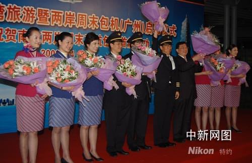 據(jù)悉,廣東地區(qū)臺灣游首團(tuán)旅客亦搭載南航兩岸包機(jī)首航航班。早上四點半,搭乘首航包機(jī)的臺胞旅客與廣東地區(qū)臺灣游首團(tuán)旅客在機(jī)場聯(lián)合舉行了簡短而熱烈的首發(fā)啟動儀式。一個來自東莞的臺商旅客激動地說:“等這一天我已經(jīng)等了十多年了,很幸運(yùn)能坐到首航包機(jī)”。