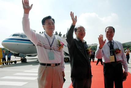 中新網(wǎng)7月4日電 兩岸周末包機(jī)今天首航,據(jù)“中央社”報道,臺中縣長黃仲生、臺中市長胡志強(qiáng)、彰化縣長卓伯源、南投縣副縣長陳志清上午九時率訪問團(tuán)一行,在臺中清泉崗機(jī)場搭乘臺灣華信航空班機(jī)啟程前往廈門,展開四天的招商和訪問。