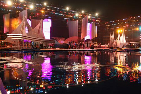 國際先驅(qū)導(dǎo)報(bào)見習(xí)記者鄧媛發(fā)自北京 一邊是“驚濤拍岸,卷起千堆雪”的榮成海上舞臺(tái),一邊是金碧輝煌、雍容典雅的臺(tái)北中式建筑。9月14日晚,這兩處別樣的景致在中央電視臺(tái)2008年中秋晚會(huì)的直播現(xiàn)場完美地融合在了一起。