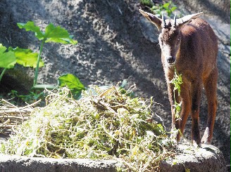 團團、圓圓可望在年底來臺,動物園除了積極準(zhǔn)備大熊貓來臺事宜外,也開始挑選贈送給大陸的長鬃山羊及梅花鹿。動物園表示,長鬃山羊是臺灣唯一的野生?苿游铮菩垲^頂都有一對終身不脫落的洞角,跳躍力驚人,一躍就是2米,有“臺灣羚羊”的別稱。長鬃山羊曾與日本動物園交換,目前園內(nèi)共有34只。而長鬃山羊每胎只產(chǎn)一仔,今年園內(nèi)共產(chǎn)下7只小羊,分別名為“長榕、長櫟、長竹、長梅、長蕊、長蔓、長茵”,四雄三雌,動物園將從中挑選出2只,雌雄各一,贈送給對岸。