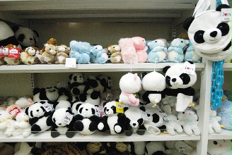 大陸贈臺熊貓團團、圓圓23赴臺,臺北市立動物園的紀(jì)念品早就有“團團、圓圓”的蹤影,各式樣熊貓的紀(jì)念品被放在明顯的位置,等候民眾購買。圖片來源:臺灣《聯(lián)合晚報》