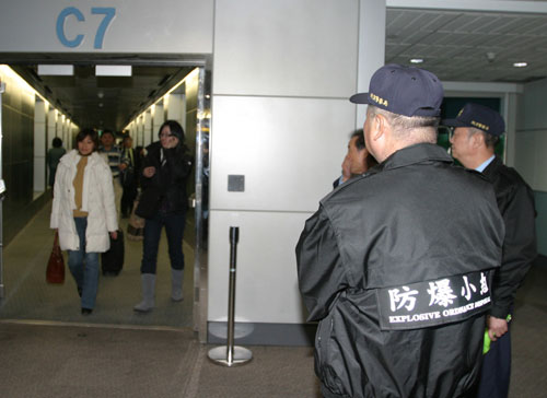 班機(jī)于晚間8時(shí)24分平安降落在桃園機(jī)場,航空警察局防爆小組也到機(jī)坪待命,并未有任何情況發(fā)生。