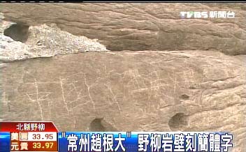 據(jù)臺(tái)灣TVBS報(bào)道,27日當(dāng)天有人在野柳地質(zhì)公園看到大批陸客,隨后就在陸橋旁的巖壁發(fā)現(xiàn)被刻上簡(jiǎn)體字樣“中國(guó)常州趙根大”,還有一個(gè)常州同鄉(xiāng)“盧建中”也來插花,又聽到園區(qū)廣播“來自常州的旅客,請(qǐng)盡速集合”,直覺“趙根大”真有其人。地質(zhì)公園經(jīng)營(yíng)業(yè)者湯錦惠無奈地說,要麻煩導(dǎo)游倡導(dǎo)不要破壞景觀。