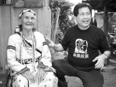 方阿妹,就是田貴實(shí)工作室里一幅紋面老人照片的主人。歲月在老人臉上刻下了滄桑,卻難掩天生麗質(zhì)。額頭所紋的圖案已經(jīng)模糊,一只眼睛也已失明,眼神卻依然安詳平和。老人在臺(tái)灣也算名人,國(guó)民黨2008參選人馬英九下鄉(xiāng)時(shí),還專(zhuān)程到這里看望了她。好客的老人出口成章,現(xiàn)場(chǎng)吟唱一曲:“美麗的大地,無(wú)論什么人種,大家都相融相處,遠(yuǎn)方的人來(lái)看我,祝你們身體健康!碧镔F實(shí)依偎在老人身旁做翻譯,兩人情同母子,場(chǎng)面煞是動(dòng)人。