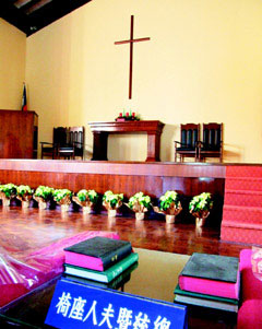 中新社香港三月六日電 臺(tái)北消息:二00八年有三十對(duì)大陸游客新人赴日月潭依達(dá)邵舉行結(jié)婚典禮?礈(zhǔn)大陸客赴臺(tái)婚禮市場(chǎng),臺(tái)灣“觀光局”日月潭風(fēng)景區(qū)管理處首度開放蔣介石與宋美齡做禮拜的“耶穌堂”,供民眾及游客使用,讓新人在日月潭湖畔留下愛的見證。
