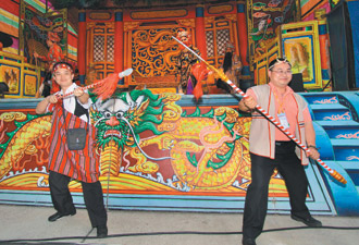 晚宴開場前,主持人告訴現(xiàn)場一千六百多名大陸旅行團員,臺灣人喝酒干杯習慣講“呼干啦!”團員現(xiàn)學現(xiàn)賣,席間大伙猛敬酒直說:“臺灣啤酒好喝”;“呼干啦!”的干杯聲不絕于耳。