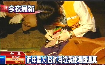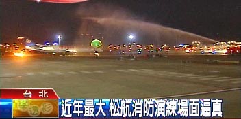 據(jù)臺(tái)灣TVBS報(bào)道,熊熊大火愈燒愈旺,松山機(jī)場(chǎng)火燒機(jī),連行李都來(lái)不及拿,旅客倉(cāng)皇逃命拔腿狂奔,連身穿像極了太空裝的消防隊(duì)員都出動(dòng),氣氛有夠緊張;不過(guò),這其實(shí)只是松山機(jī)場(chǎng)難得的演習(xí),但場(chǎng)面真的很盛大。