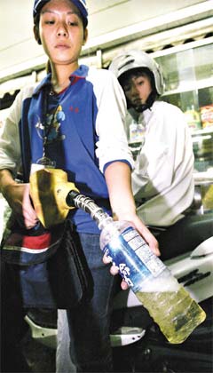 中新網(wǎng)10月31日電 臺灣島內(nèi)油價周五漲價,確定會漲到歷史新高,引發(fā)用油族的“囤油效應(yīng)”,不少人最近紛紛帶著瓶子上加油站,摩托車油箱加滿后再“加滿瓶”帶回家,高油價意外點燃“汽油炸彈滿街跑”的安全疑慮。