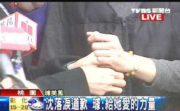 中新網(wǎng)2月26日電 2001因?yàn)樯⒉艰趁励P光盤入監(jiān)服刑1年的沈嶸今天出獄,璩美鳳和沈野夫婦及40名獨(dú)家報(bào)道的員工,前往桃園女子監(jiān)獄接沈嶸出獄,沈嶸落淚向璩美鳳鞠躬致歉,璩美鳳則贈送佛珠,希望給她力量。