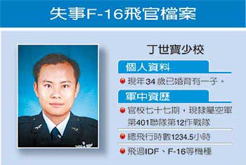 中新網(wǎng)3月5日電 據(jù)臺(tái)灣《聯(lián)合報(bào)》報(bào)道,臺(tái)灣空軍少校飛行員丁世寶昨晚駕駛F-16戰(zhàn)機(jī)在花蓮?fù)夂J?lián)。臺(tái)空軍初步分析,很可能已經(jīng)墜機(jī)。