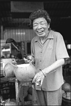 最健康的小桃阿嬤,至今仍在果菜市場(chǎng)靠賣椰子汁維生。當(dāng)聽到工作人員問(wèn)現(xiàn)場(chǎng)劈二十個(gè)會(huì)不會(huì)吃力?她非常不以為然地說(shuō):“我劈一百個(gè)都沒(méi)問(wèn)題!”
