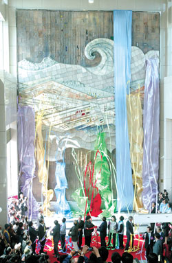 捷運(yùn)紅線唯一的景點(diǎn)橋頭糖廠,最出名的“枝仔冰”被搶購(gòu)一空。民眾手拿“枝仔冰”,望著高十二米、寬九米的“天工開(kāi)物”大型陶壁公共藝術(shù)品,讓維護(hù)清潔的高雄捷運(yùn)員工焦急不已,擔(dān)心將藝術(shù)品弄臟,想勸阻又怕掃了大家的興致,只好忍下,期待捷運(yùn)禮節(jié)能慢慢融入民眾心中。