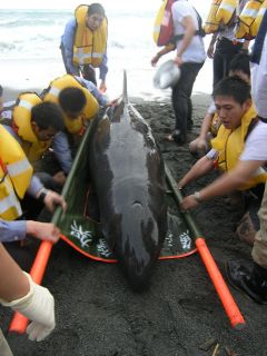 一偽虎鯨擱淺花蓮海攤 難存活被施行安樂(lè)死(圖)
