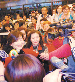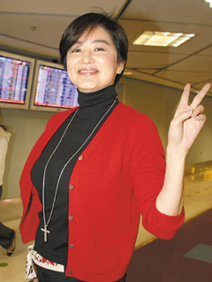 林青霞就是不一樣,人還未出關(guān),先行通關(guān)的民眾已交頭接耳,“很水(漂亮)哦”、“穿大紅色,美女啦”,待她一現(xiàn)身很多粉絲干脆不走了,有人拿出珍藏多年“窗外”海報請她簽名,還有人把“東方不敗”劇報帶來,林青霞感動得大叫:“你們怎么有這些?”巨星看來比粉絲還興奮且激動。