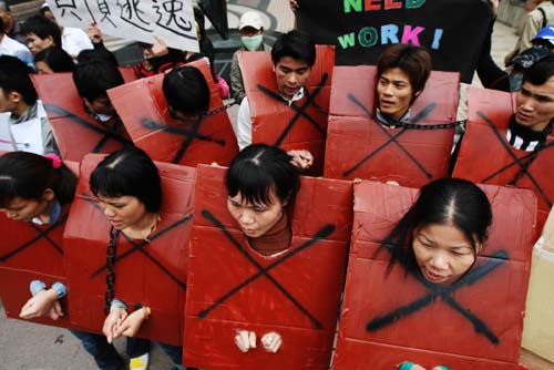 中新網4月24日電 臺灣移工聯盟等關懷外勞人權團體今天帶領許多外籍勞工到臺灣當局“勞委會”門口,抗議外勞政策粗糙。